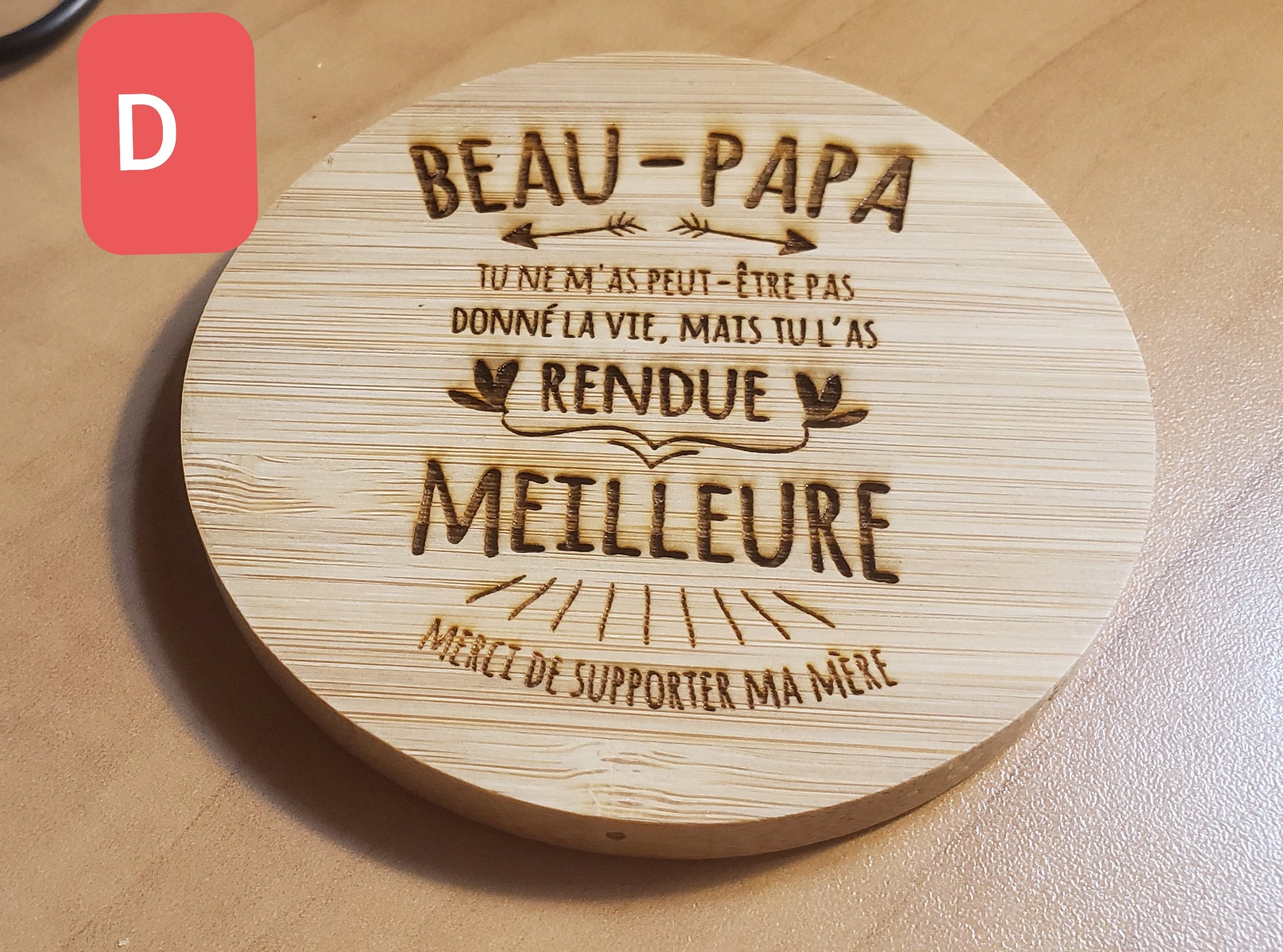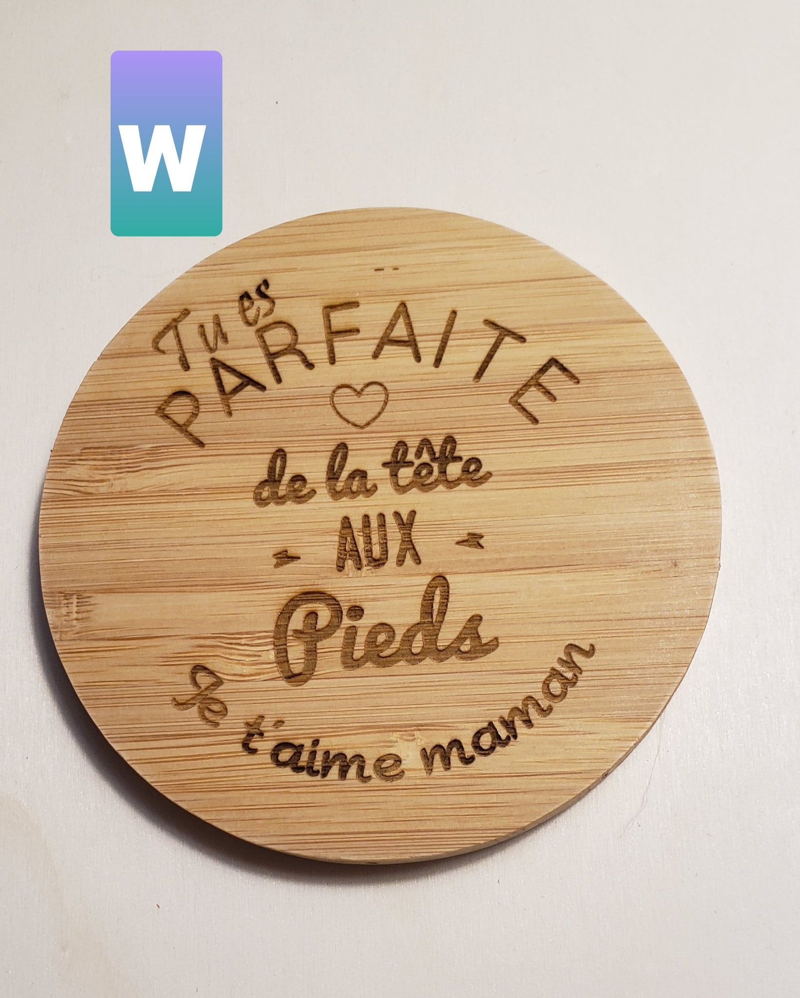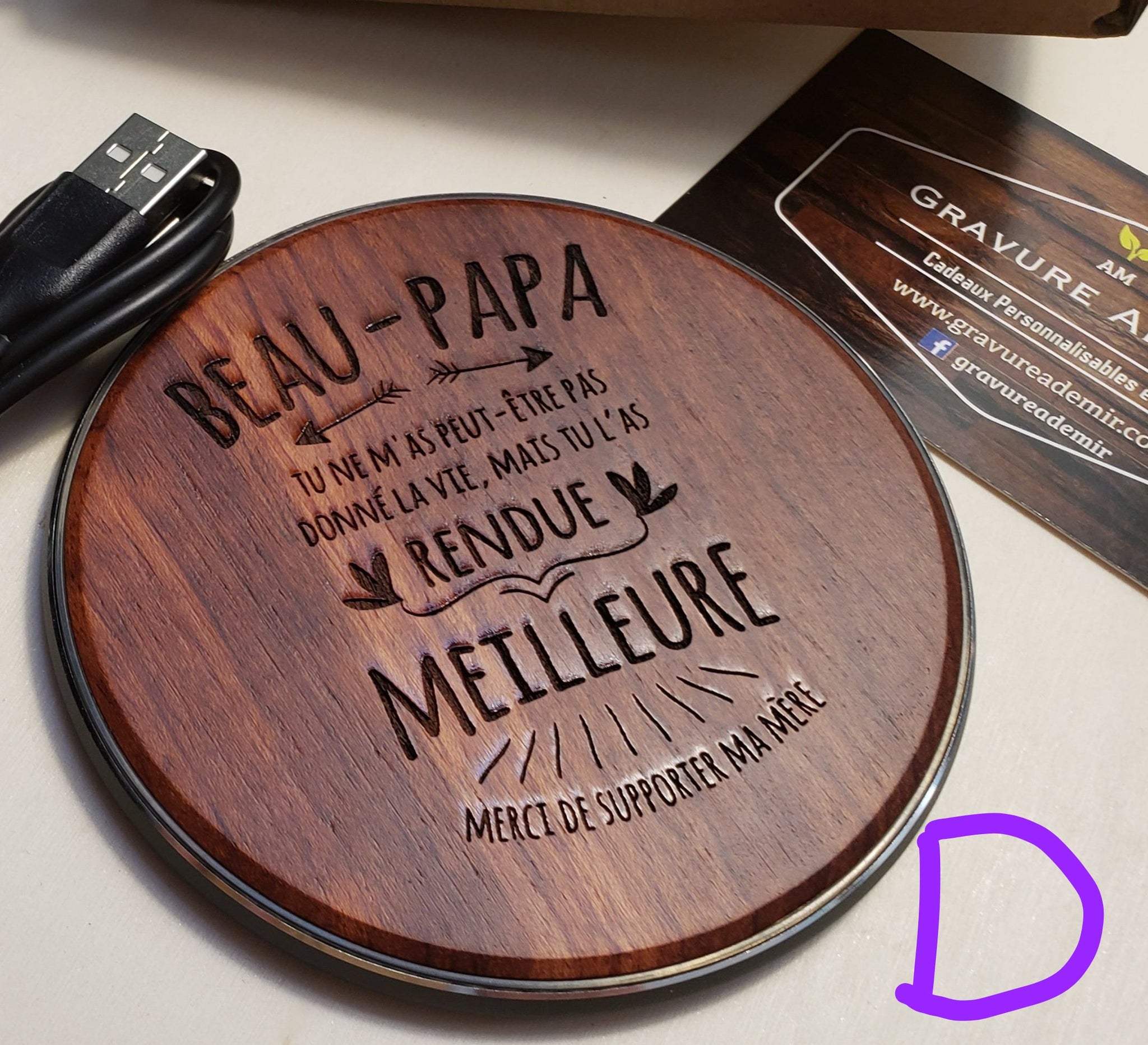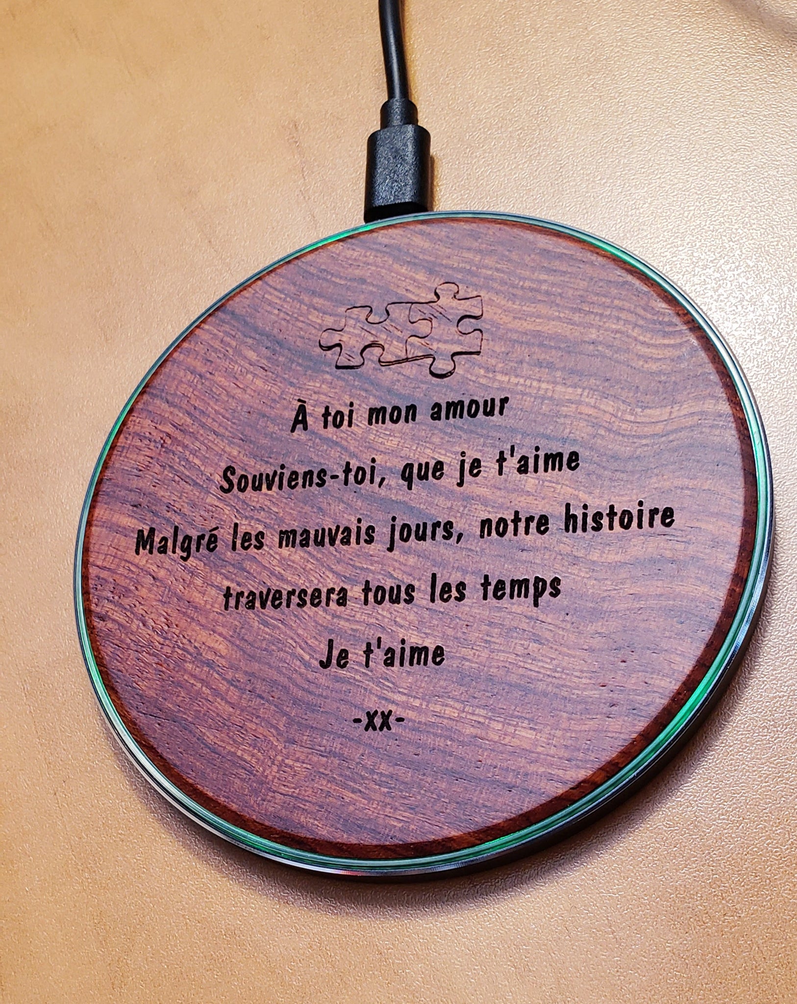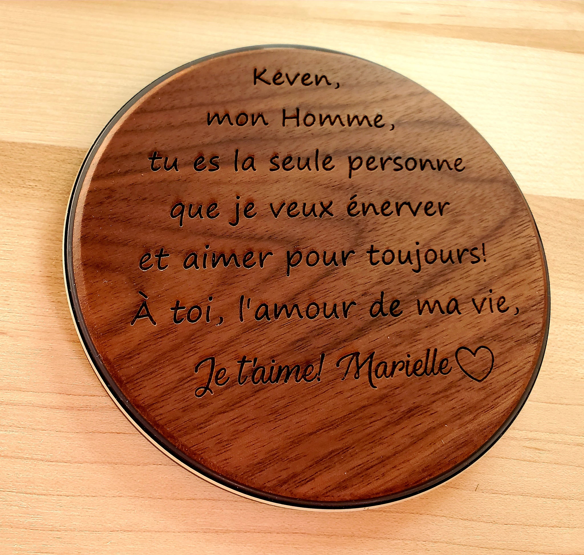 Gravée au laser avec un message et un motif de votre choix .Maximum 30 mots et un motif