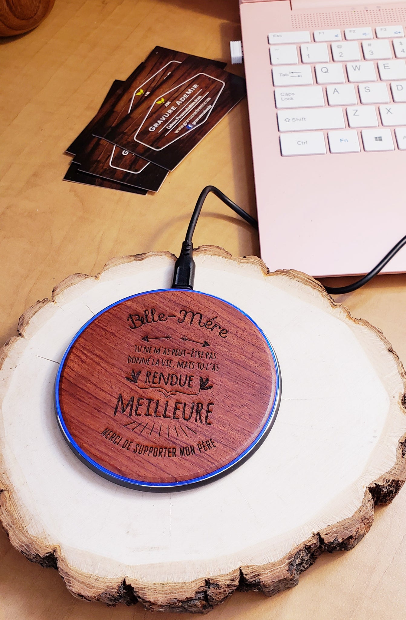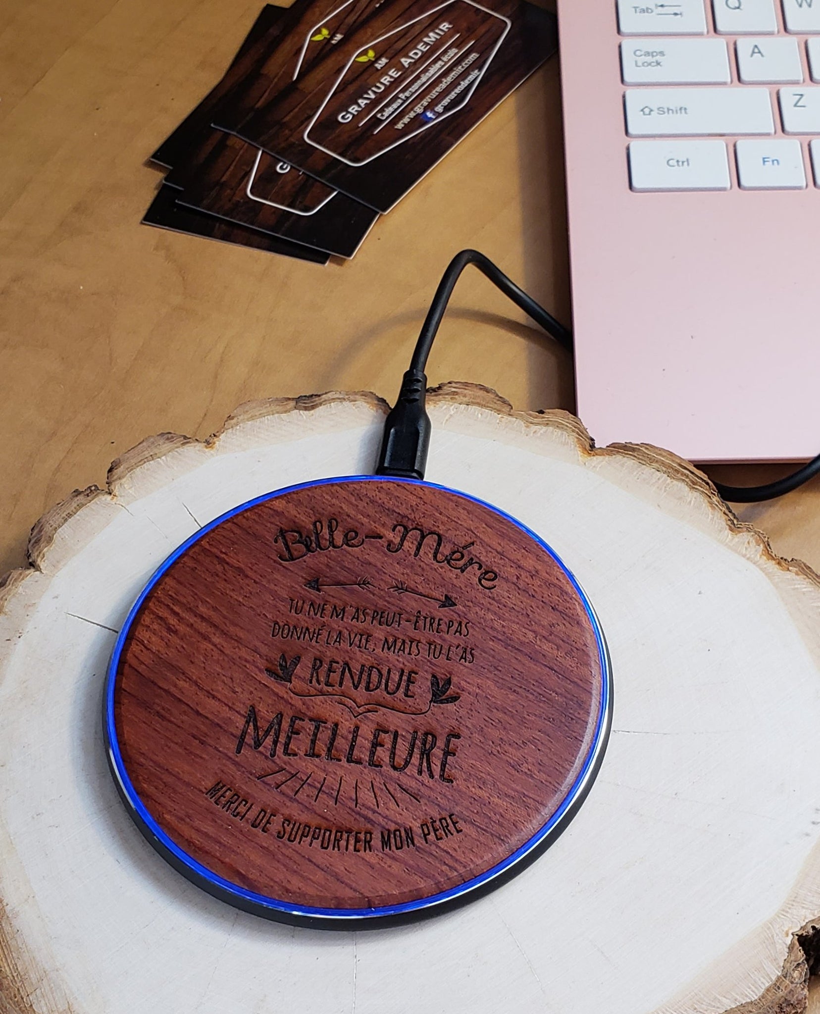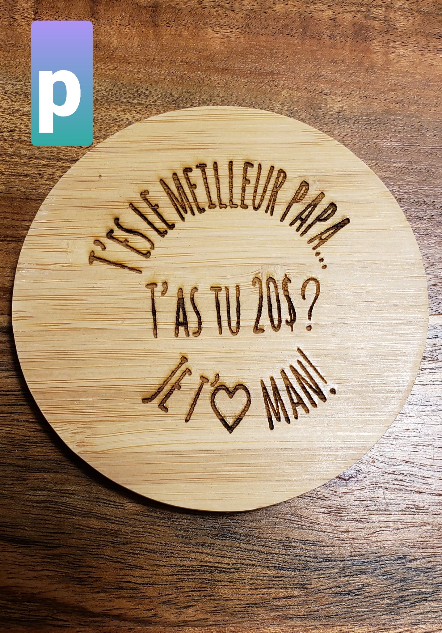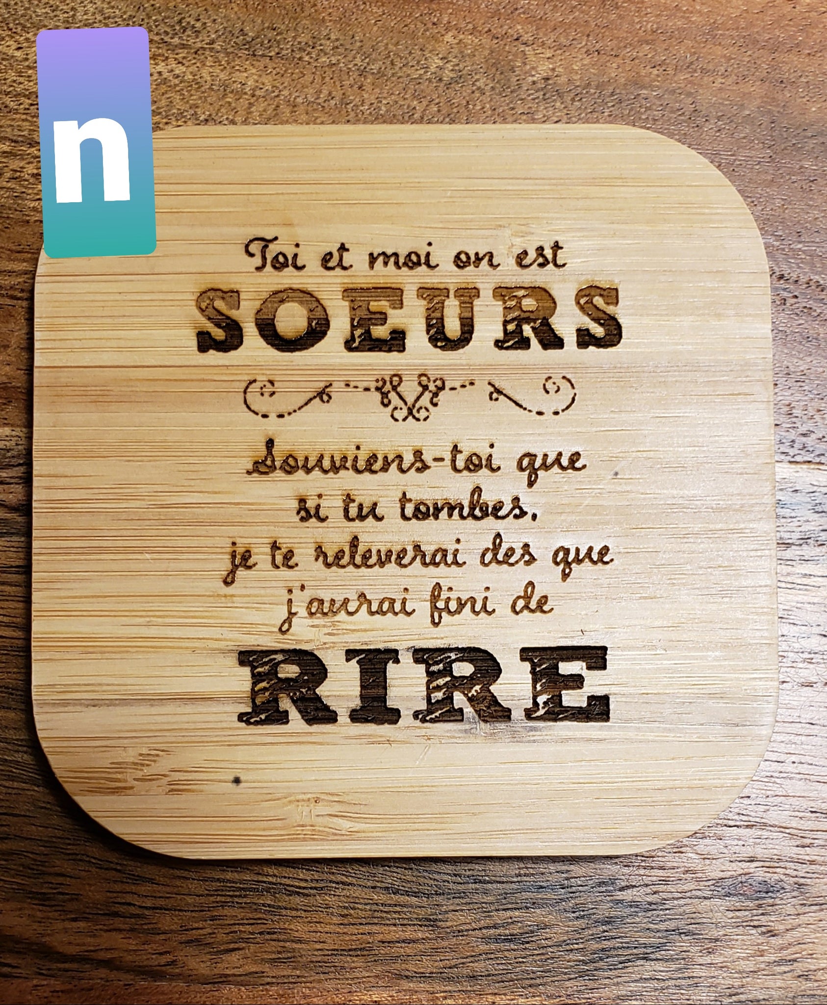Gravée au laser avec un message et un motif de votre choix .Maximum 30 mots et un motif