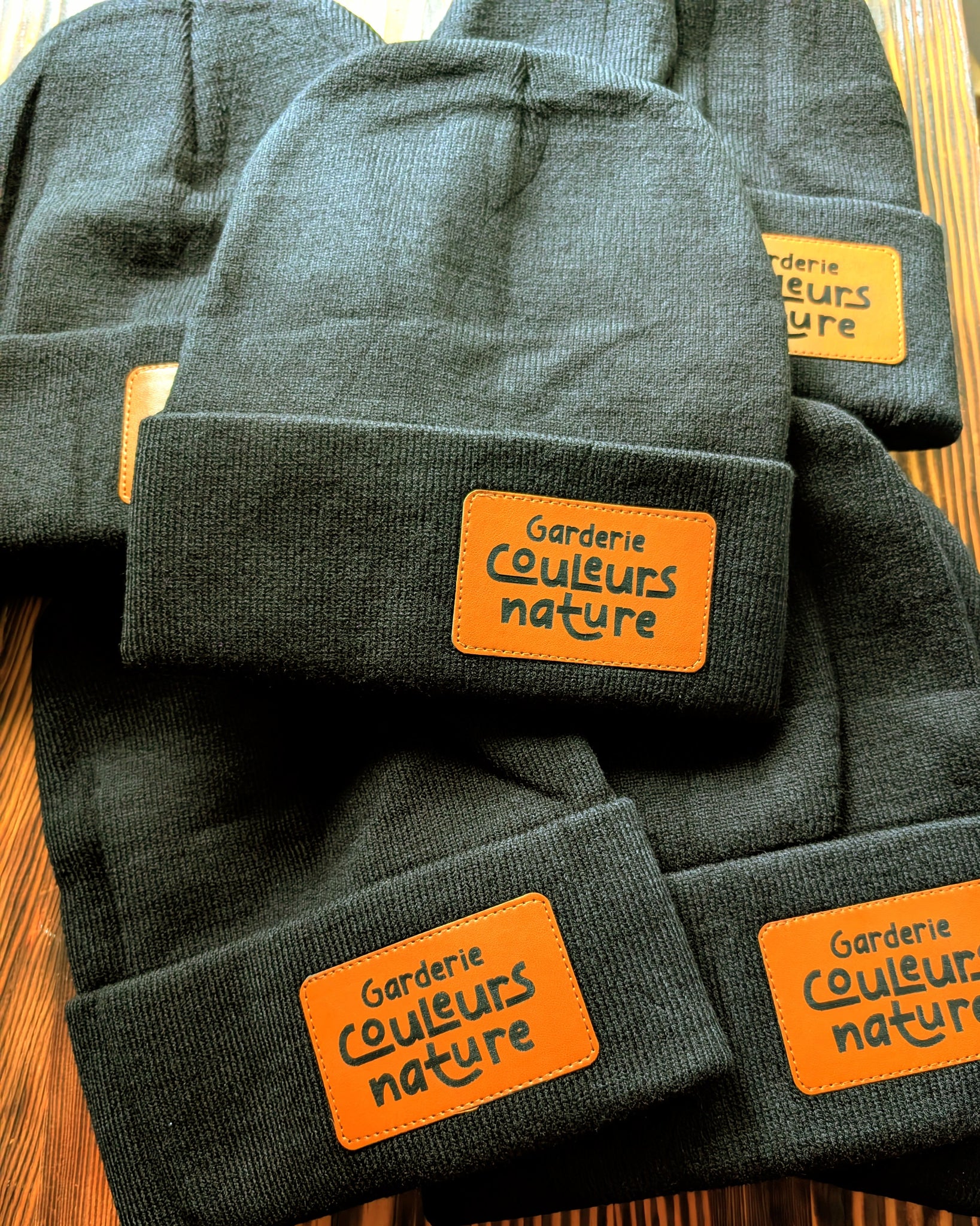 Une tuque fraichement gravée peut avoir des traces de poussières de cuir brûlé à la gravure( du noir). et ce quand vous touchez la gravure les 1 ere fois .C est tout a fait normal .cela s'estampe avec le temps .et ça palit la gravure mais elle ne s efface jamais