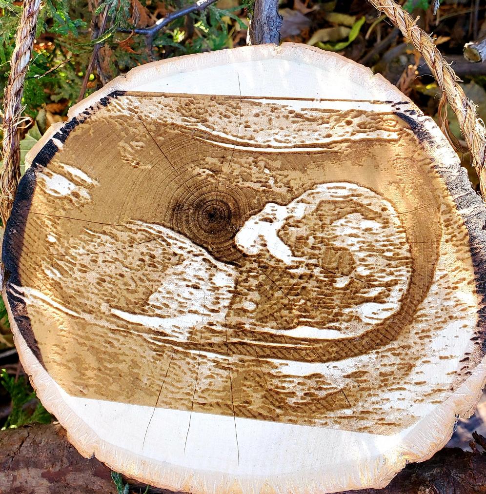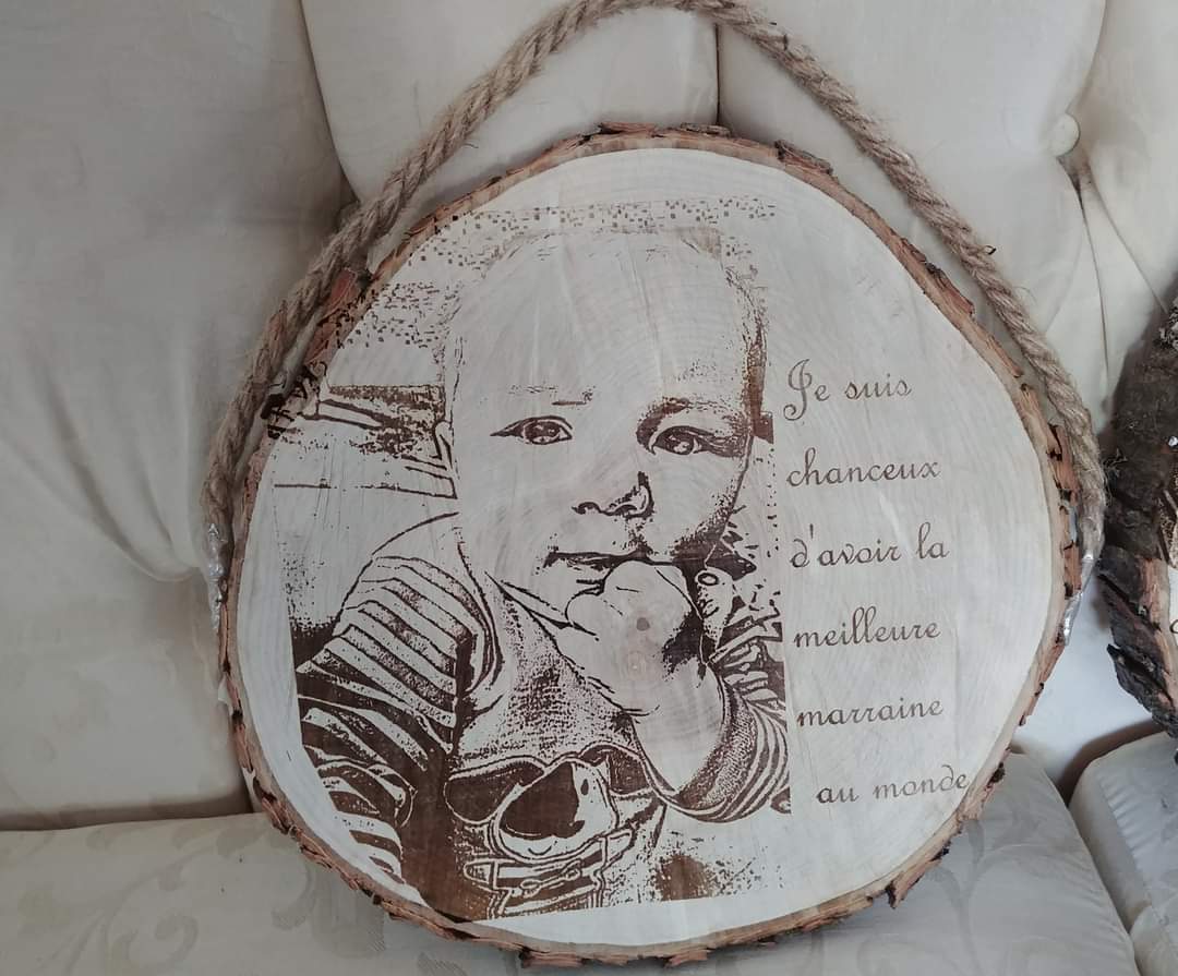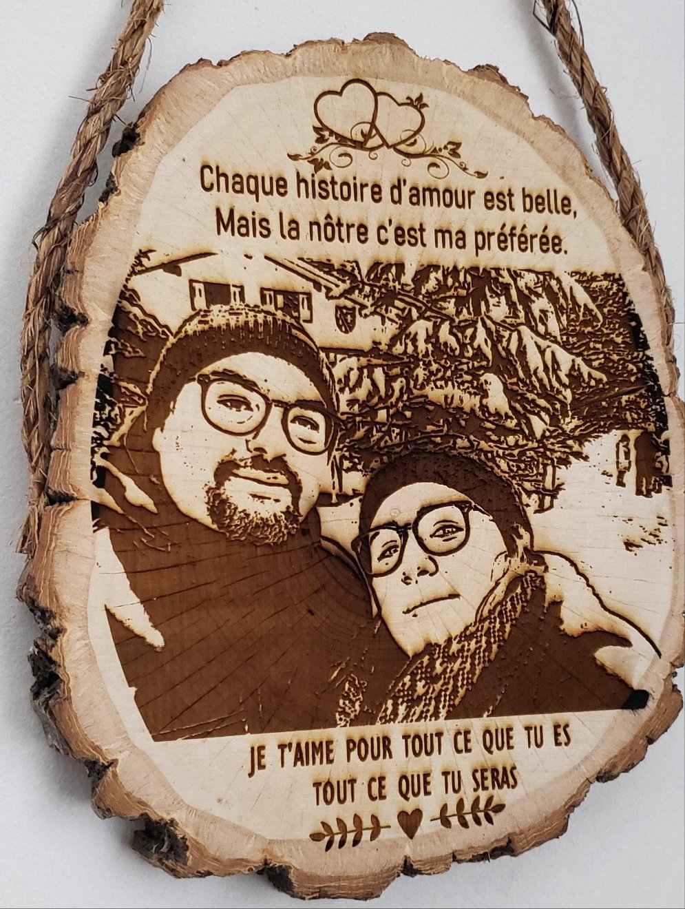 Et prendre note que tout les rondin ont un noyau qui sort foncé à la gravure.et chaque rondin vient d'un arbre différent dont son noyau est différent