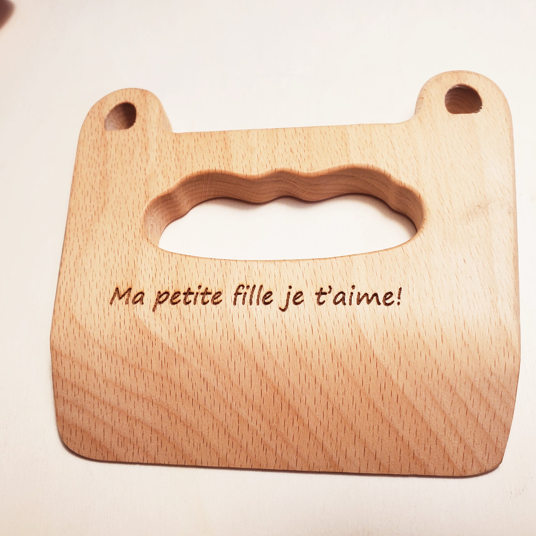 Entretien : laver à la main seulement et sécher aussitôt, il ne faut pas laisser dans l'eau.c'est du bois naturel
